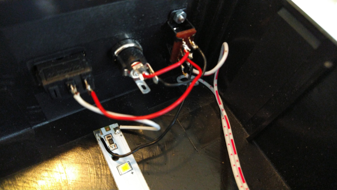 (Och som ni förstår öppnade jag raskt upp ljusboxen igen och flyttade in kablarna till kanten … )
