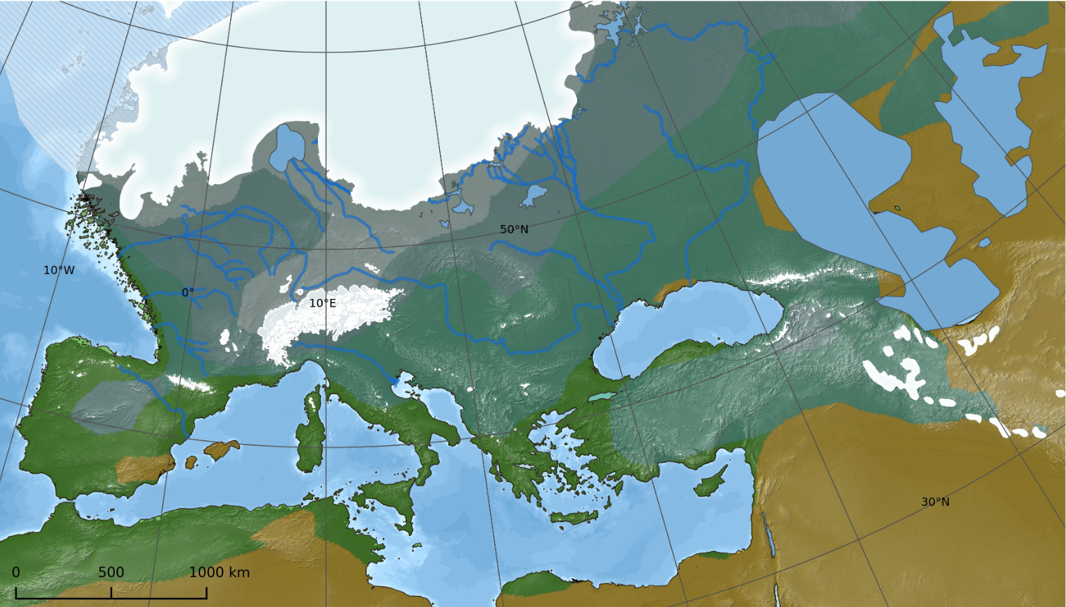 Image licensed under CC-BY: Becker, D., Verheul, J., Zickel, M., Willmes, C. (2015): LGM paleoenvironment of Europe - Map. CRC806-Database, DOI: 10.5880/SFB806.15