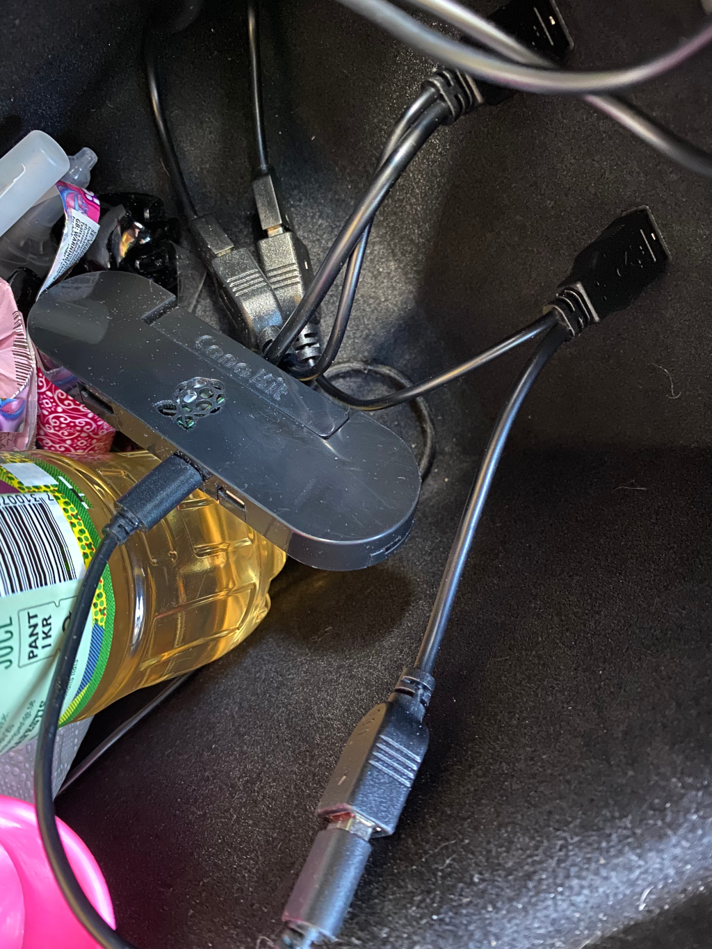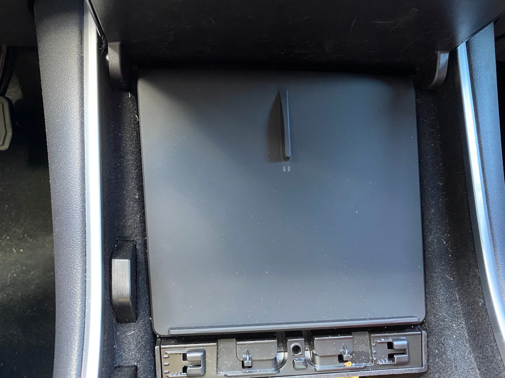 I keep my car messy. It’s a vehicle, not a showroom. Anyway, this photo shows their Y-cable solution where you still have access to two front USB ports even though they also power the wireless charger. Also in this image is a Raspberry Pi Zero running the awesome teslausb sync-thingie.